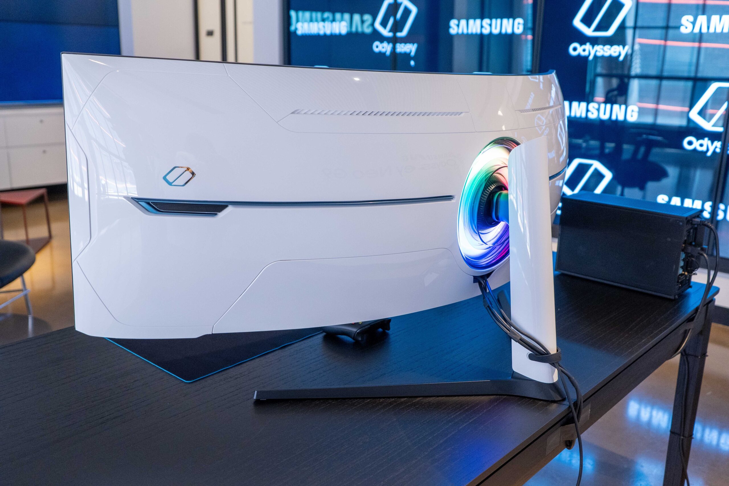 The first thing you notice about the Odyssey Neo G9 is its sheer, unapologetic scale. This 49-inch super-ultrawide monitor, with its aggressive 1000R curvature, is designed to dominate your desk and your senses. The build quality is solid, with a futuristic stormtrooper-white glossy plastic shell and Samsung’s signature “Infinity Core” lighting on the back, which adds a touch of customizable ambiance. While the plastic construction might feel slightly underwhelming for a device at this price point, the stand is a robust piece of engineering, providing stable tilt and swivel adjustments. Be warned, however: this monitor is a two-person lift, and it demands a desk with considerable depth to accommodate its curve and footprint.