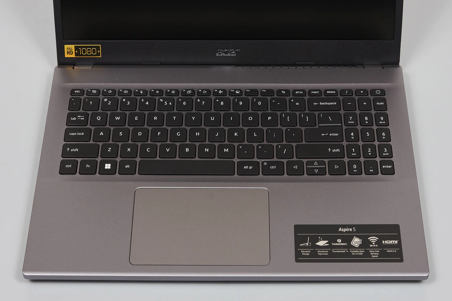Ergonomics and daily usability are where this chassis shows its practical strengths. The lifting hinge design, a staple in modern Acer laptops, slightly elevates the keyboard deck when opened. This subtle tilt improves typing angles, enhances bottom-firing speaker output, and significantly boosts thermal airflow. The full-sized backlit keyboard offers surprisingly satisfying key travel, though the inclusion of the numeric keypad makes the layout feel slightly cramped. Below the deck, the plastic trackpad gets the job done with Windows Precision drivers, but it lacks the glass-coated glide found in higher-tier machines.