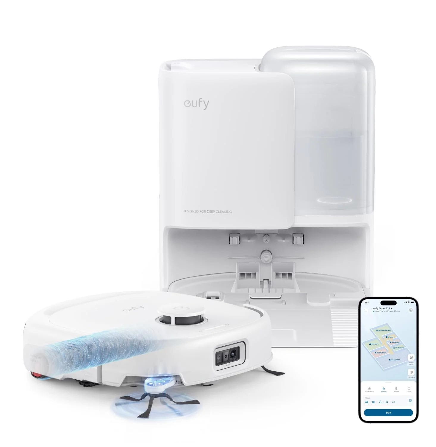 Standout features include hybrid vacuuming and mopping in a single pass, with three water flow levels adjustable through the EufyHome app. Users can create virtual no-go zones, custom room labels, and scheduled cleaning routines with minimal effort. Multi-floor mapping support allows the E25 to remember layouts for homes with multiple levels, simply by moving the unit between floors.