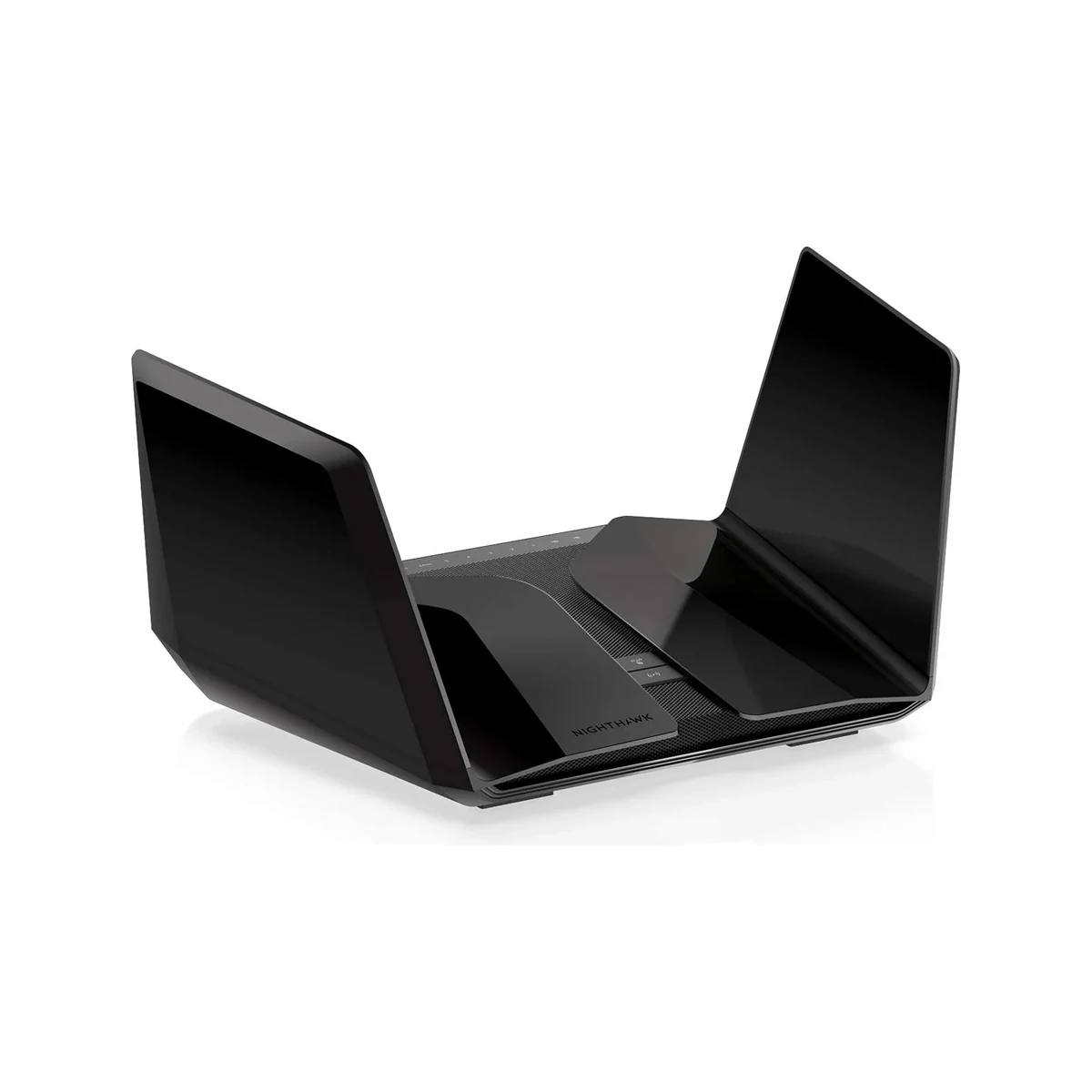 The Netgear Nighthawk RAXE500 makes a bold statement with its angular, stealth-inspired aesthetic. Finished in a matte black with subtle red accents, the router features a large, hexagonal top panel that doubles as a heat vent. At nearly 12 inches wide, it demands significant real estate but feels premium and purposeful. The build uses high-quality ABS plastic that resists fingerprints while providing excellent structural rigidity.