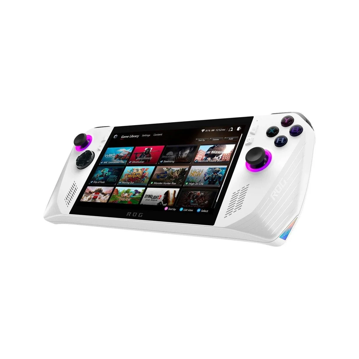 The ASUS ROG Ally features a striking white or black chassis with aggressive ROG styling that immediately communicates its gaming intent. The build uses high-quality plastics with textured grips that provide excellent purchase during long sessions. At 678g, it feels substantial yet balanced, with thoughtfully contoured handles that accommodate various hand sizes better than the original 2023 model.